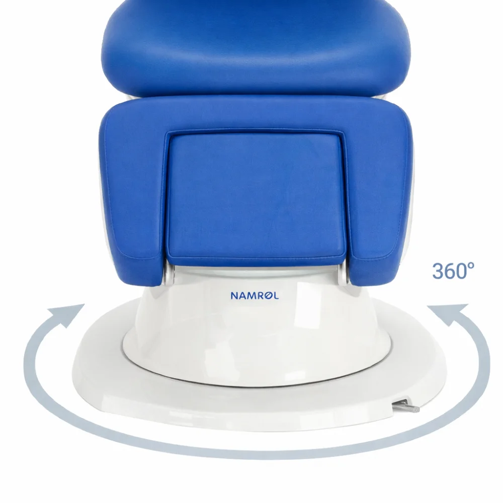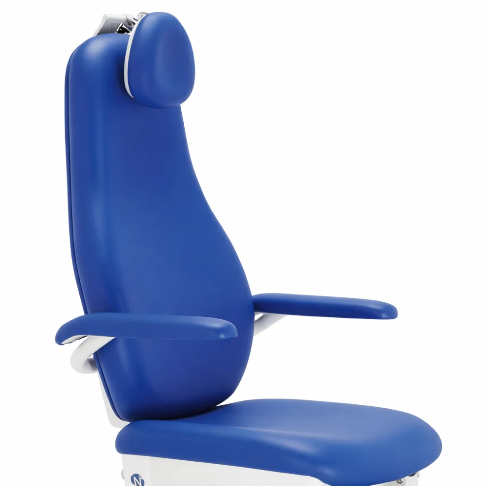 • Ανακλινόμενο υποπόδιο & ρυθμιζόμενο στήριγμα κεφαλής → Εξασφαλίζουν ότι ο ασθενής παραμένει χαλαρός και σταθερός, ακόμη και σε παρατεταμένες κλινικές διαδικασίες.