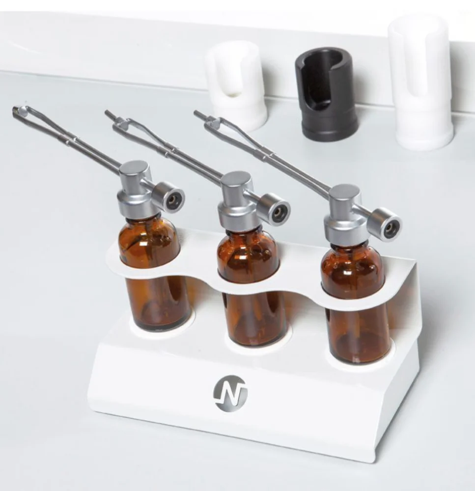 ![]() | Νεφελοποιητής φαρμάκων | Εύκολη σύνδεση της φιάλης ψεκασμού στη χειρολαβή με ένα απλό κλικ. Περιλαμβάνει: 1 χειρολαβή, 2 φιάλες φαρμάκων και 2 ευθείς εκνεφωτές (1 για ψεκασμό σκόνης και 1 για ψεκασμό υγρών). |