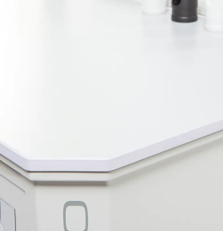 - Επιφάνεια εργασίας Quirofibra → Μη πορώδες υλικό που ανθίσταται σε χαράξεις και χημικά, εξασφαλίζοντας εύκολη απολύμανση και διατήρηση της άψογης εμφάνισης για χρόνια.