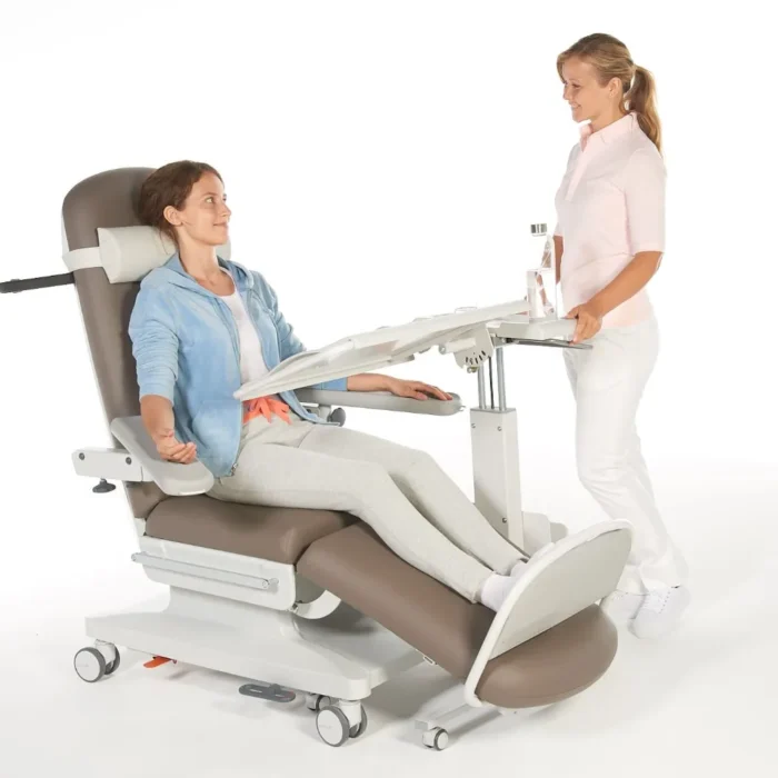 Οι δίσκοι από Βοηθητικό Κινητό Τραπέζι Side Table BT είναι αποσπώμενοι, με λαβές για εύκολη και ασφαλή χρήση, ενώ οι επιφάνειές τους είναι ανθεκτικές σε φθορές και κατάλληλες για γρήγορο καθαρισμό και απολύμανση, διασφαλίζοντας άριστη υγιεινή. Με τον εργονομικό σχεδιασμό και τις εύκολες στη μετακίνηση ρόδες τους, τα τραπέζια αυτά είναι ιδανικά για θεραπείες μακράς διάρκειας, όπως αιμοκάθαρση και χημειοθεραπεία, προσφέροντας άνεση και υποστήριξη στους ασθενείς.